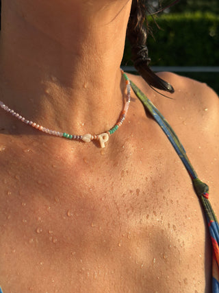 Collar con Inicial y Corazón de Concha – Cuentas de Cristal de Colores