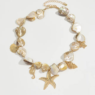 Collar de Piedras con Charms Marinos – Estrella de Mar, Caracola y Caballito de Mar