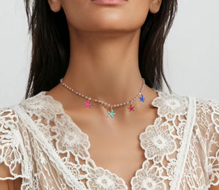 Collar de Perlas con Estrellas de Mar de Colores – Estilo Verano Boho