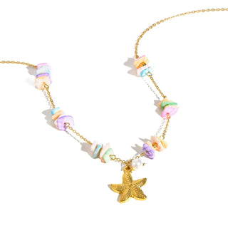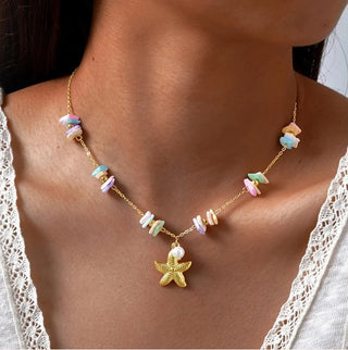 Collar dorado con estrella de mar y perla | Acero inoxidable oro 18K