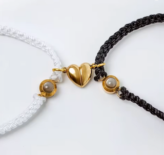 Pulsera para parejas con foto y corazón magnético en acero inoxidable