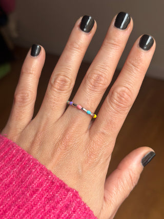 🌸 Anillo ajustable con flores de perlas y cuentas rosas – Acero inoxidable